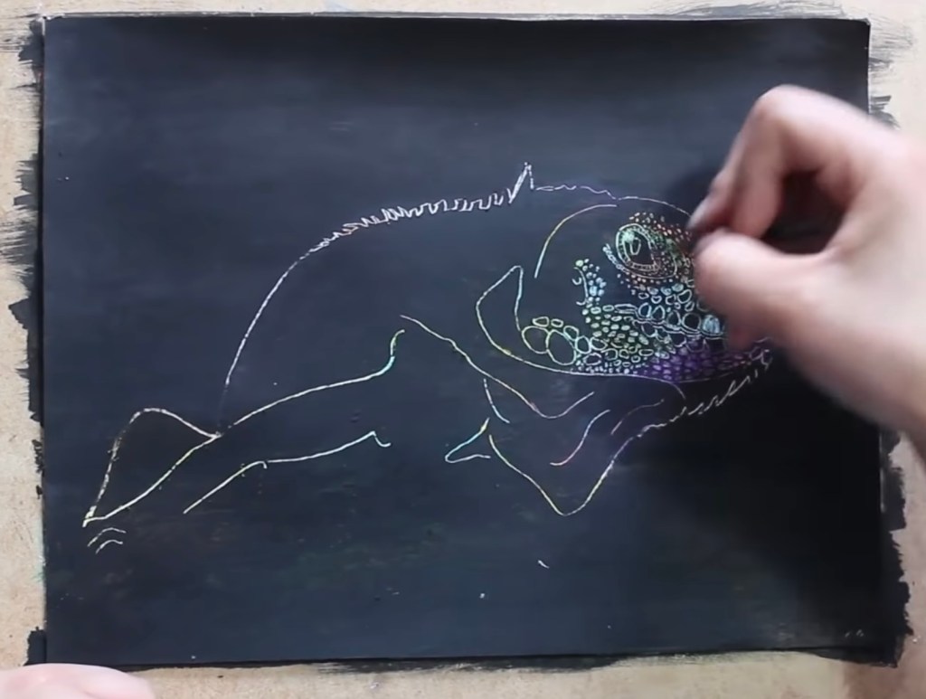 - Una vez seca la capa de técnica húmeda, raya tu diseño y sobretodo…¡disfruta del proceso!