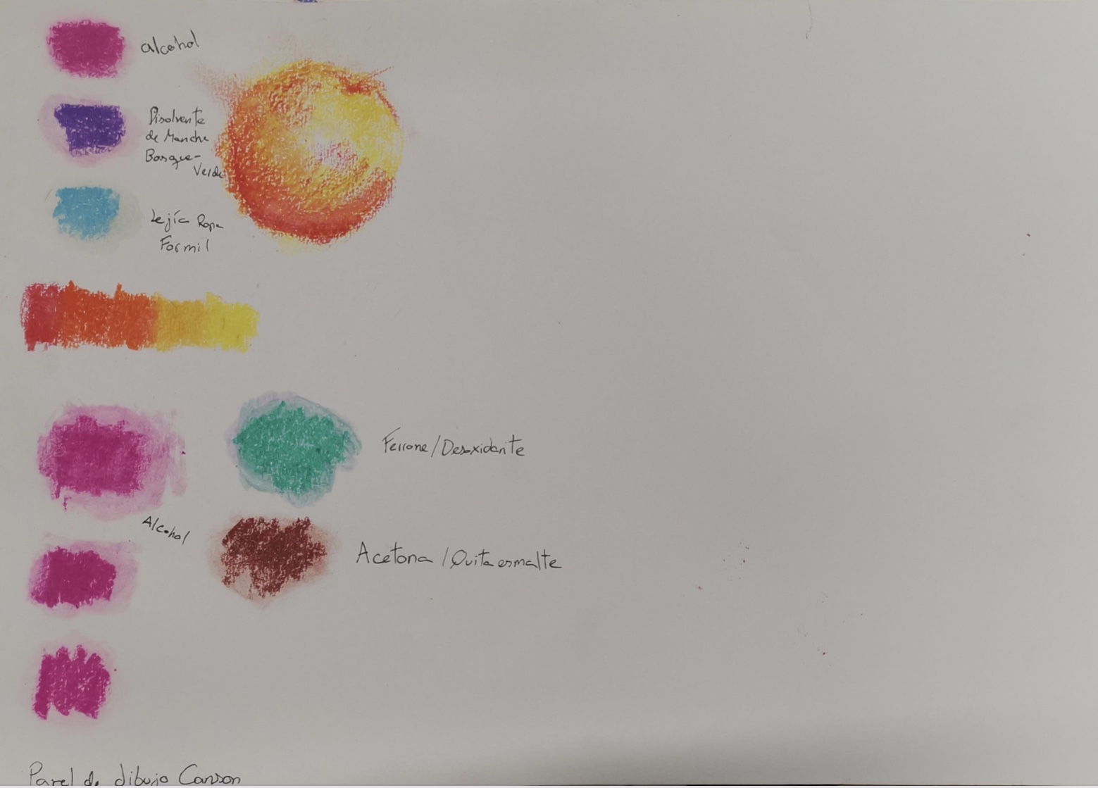 Te recomiendo que emplees cualquier disolvente que tengas a mano, experimentes y te diviertas. Probar con diferentes papeles y por ejemplo, jugar también con el tiempo: depositando producto para extraerlo después, frotar en seco, etc… Anótalo todo, el resultado puede llegar a ser muy interesante.