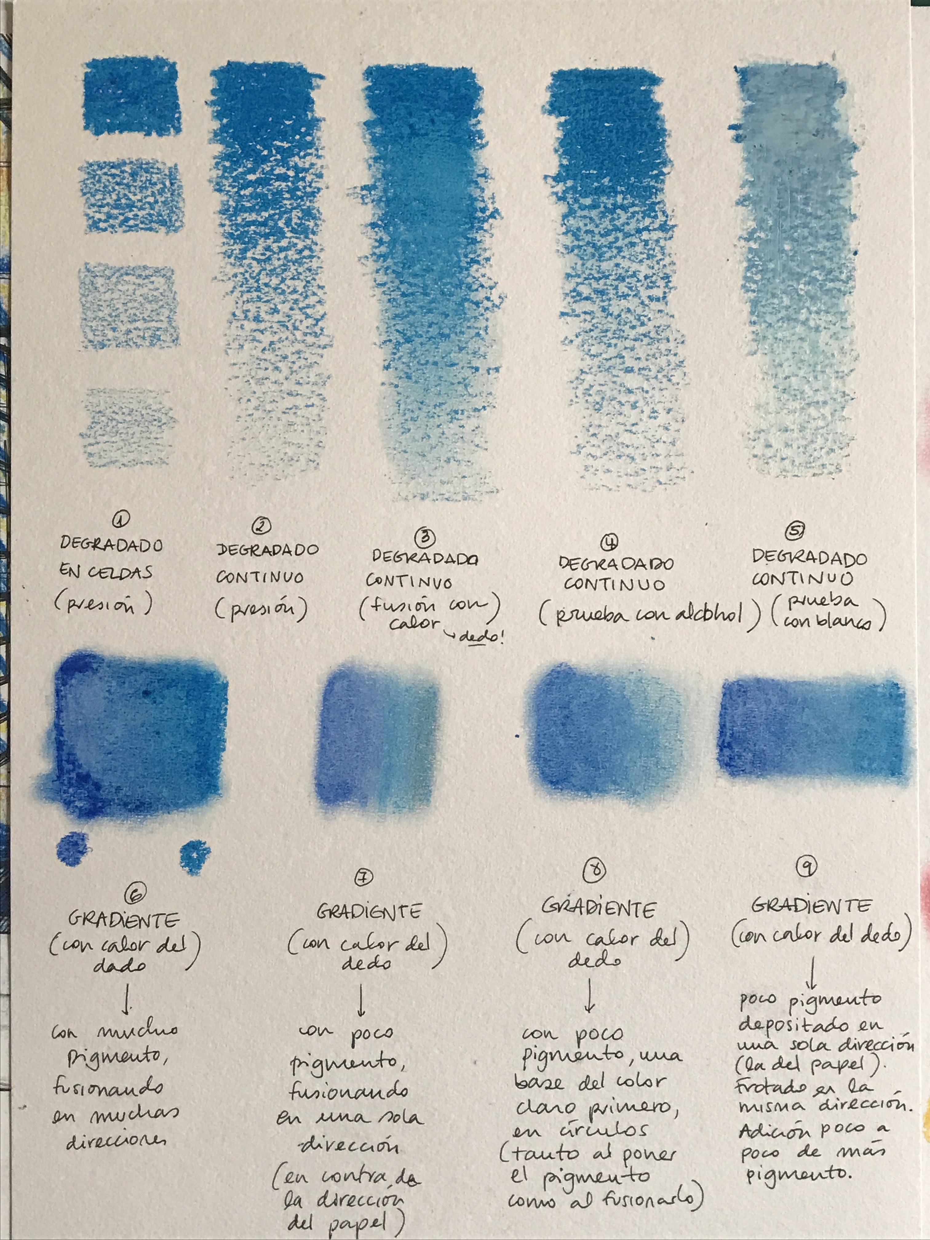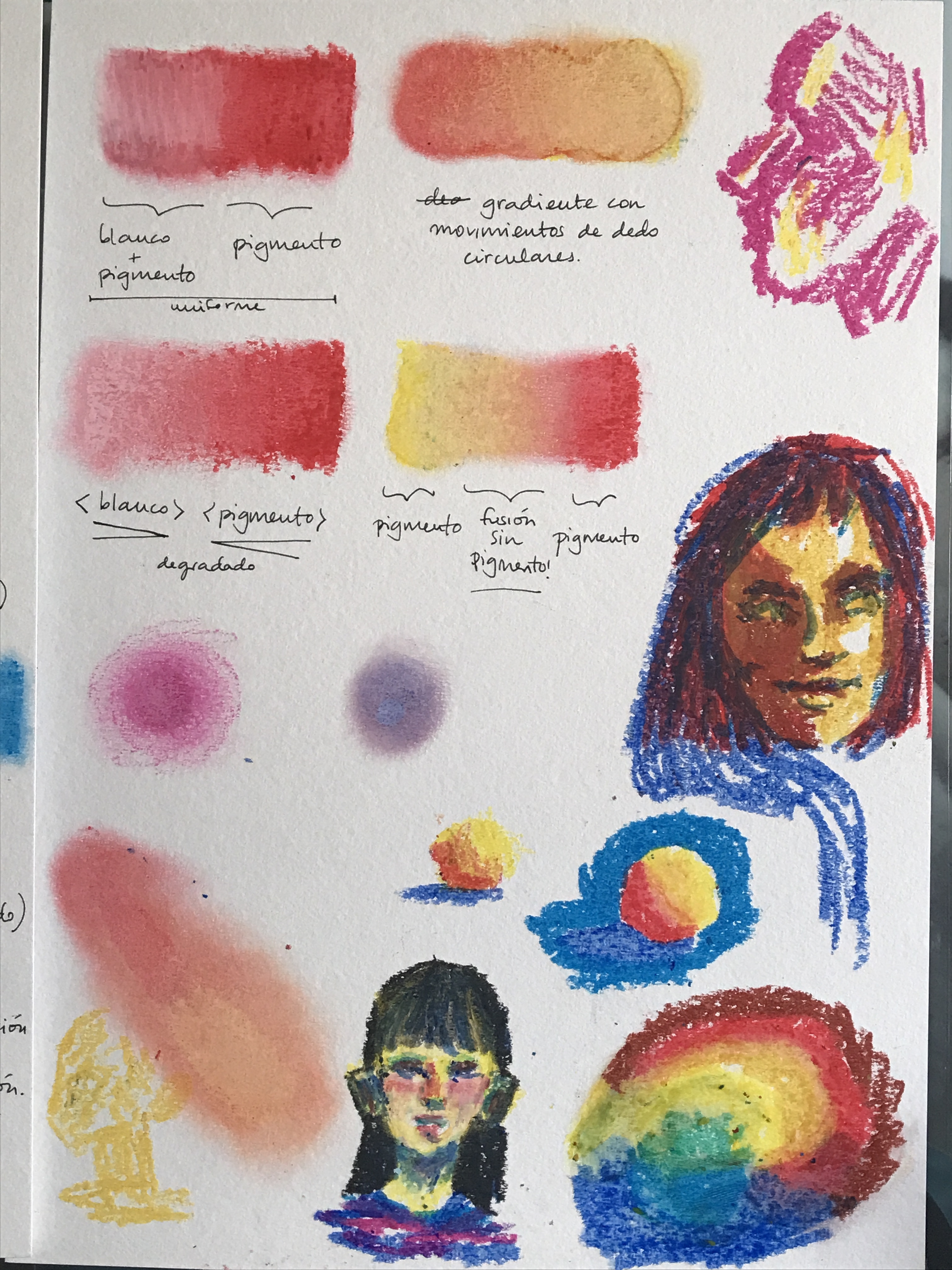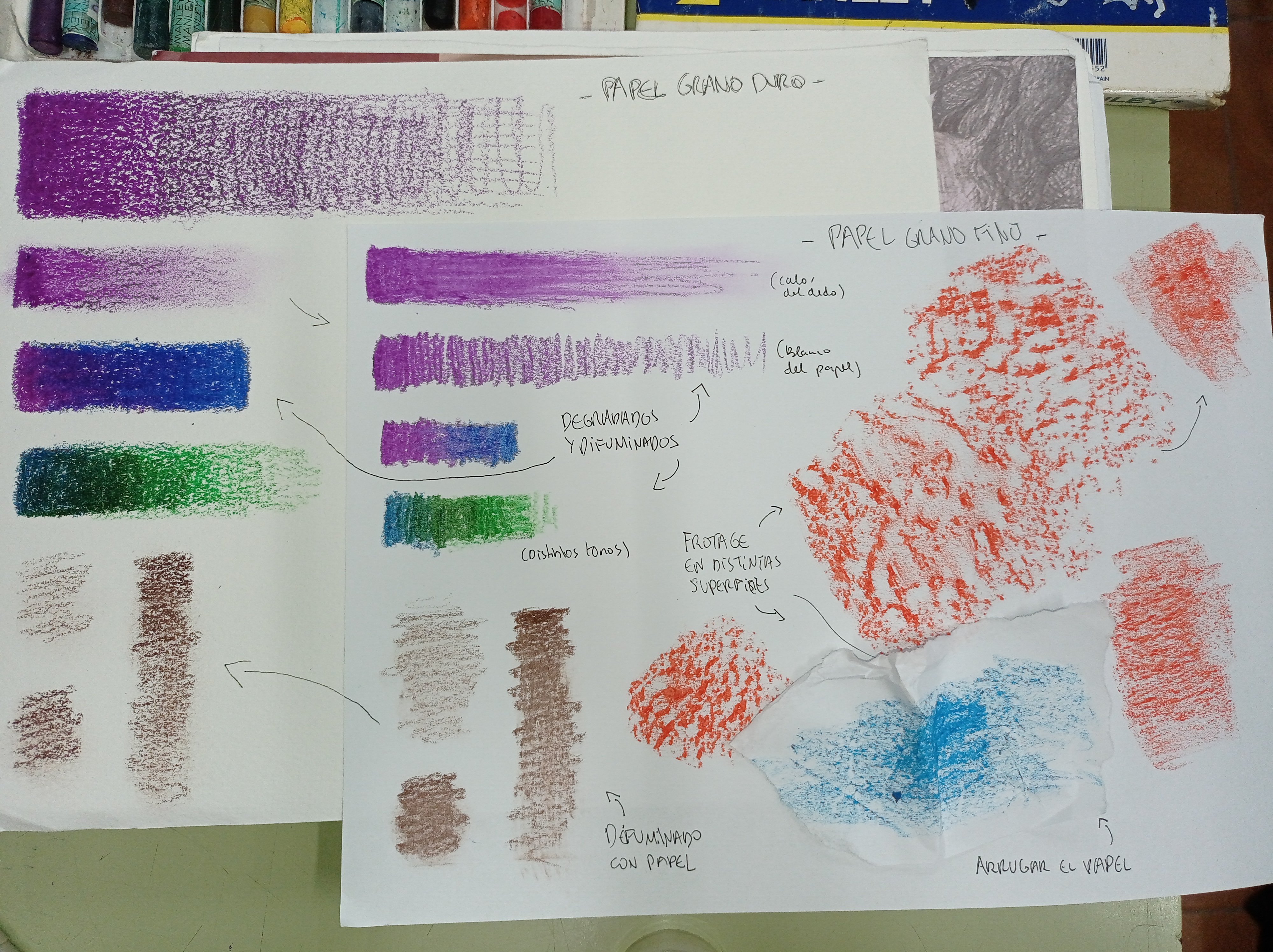 Esta técnica seca a la hora de trabajarla puede llegar a ser monótona si no te arriesgas a experimentar. Un elemento importante de este material es la grasa inherente que posee. Que a la hora de trabajarlo puede ser un impedimento o un factor a tu favor.