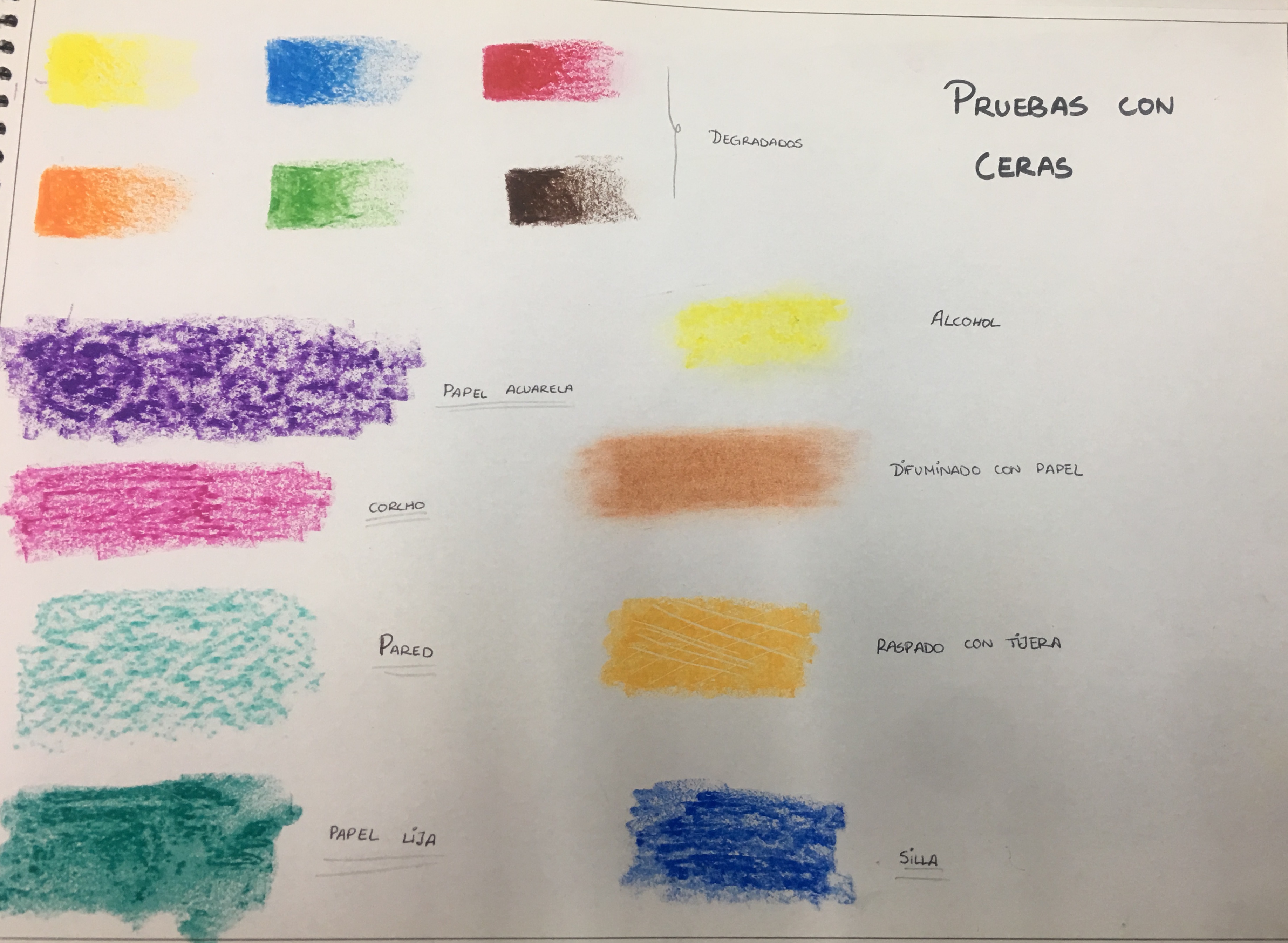 Con las ceras y el disolvente adecuando se pueden conseguir efectos acuarelables como: degradados, difuminados, efectos de aguadas, mezclas homogéneas de colores translúcidos, capas, …