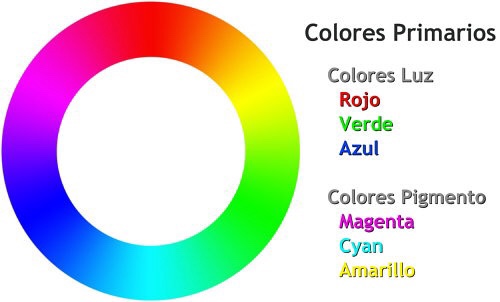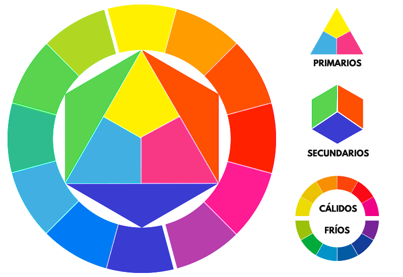 A continuación un esquema de colores primarios, colores secundarios y la temperatura de estos: