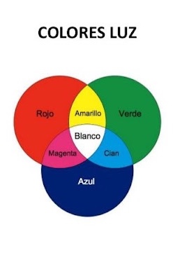 Rojo, verde y azul (RGB) son los colores primarios aditivos que forman la luz blanca, y se usa para producir imágenes a color en la pantalla del ordenador. Los monitores a color son capaces de reproducir aproximadamente el 70% de la gama de colores que percibe el ojo humano.