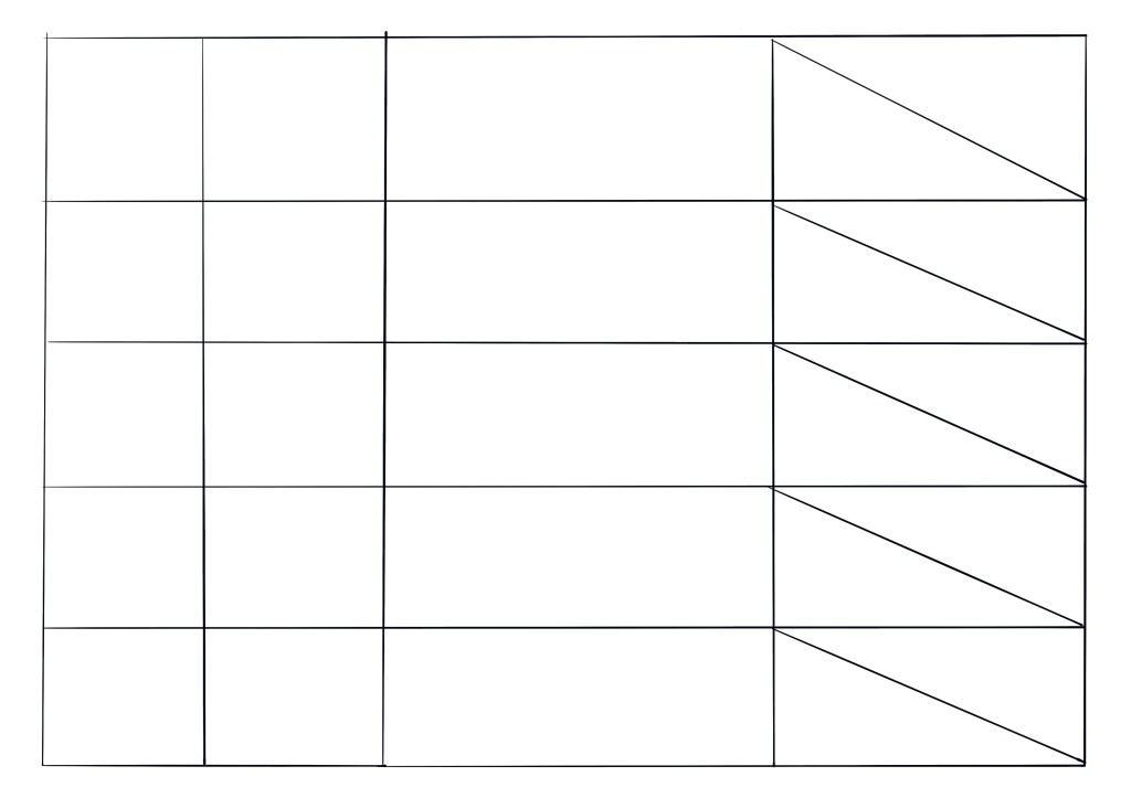 Una vez realices dos tercios de la lámina, realizarás en la parte derecha, con esas parejas de colores, una combinación juntos, pero no mezclados. Experimenta a dejarlo secar y espera. Cuidado con los depósitos en el borde del triángulo, ya que al querer acercarse al borde podrás depositar mas pigmento y no ser un color homogéneo. O intentarlo cuando aún está el otro color húmedo, para entrenarte a controlar el agua y “bailar” con el pigmento.