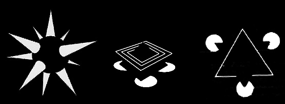 Las formas aunque sean planas nos hacen percibir volumen y espacio, tal y como se muestra en la Ilustración basada en las teorías de la percepción, según su orden y composición en el plano: Principio de la Gestalt.