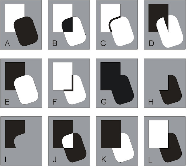 En la representación de la Gestalt de la figura/fondo hay ambigüedad entre la determinación de varias figuras en contraposición del efecto de negativo.