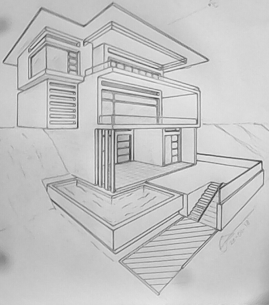 Dibuja en perspectiva cónica oblicua con dos puntos de fuga que sea: