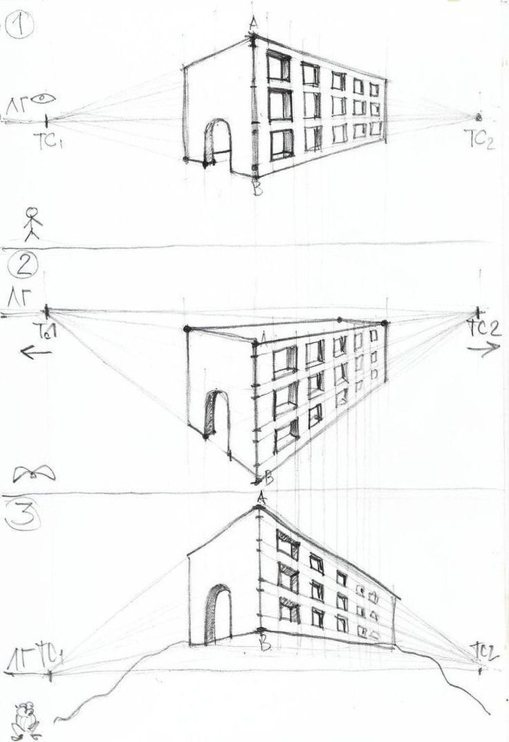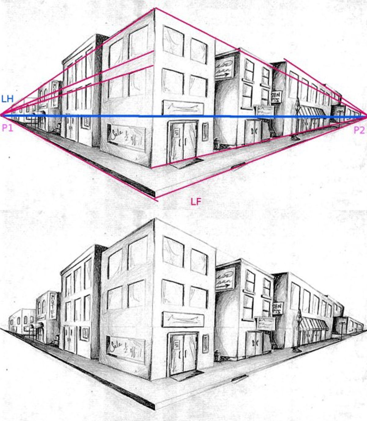 - Sitúa los puntos de fuga fuera del papel. Llena la página con tu dibujo.