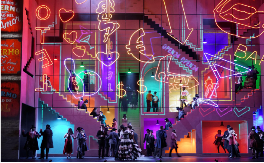 Solemos imaginar esta relación como aquella derivada de un tipo específico de edificio provisto de butacas, una embocadura y un escenario emplazado en altura, como herencia de los edificios teatrales del siglo XVI, y por tanto un espectador frontal y pasivo.