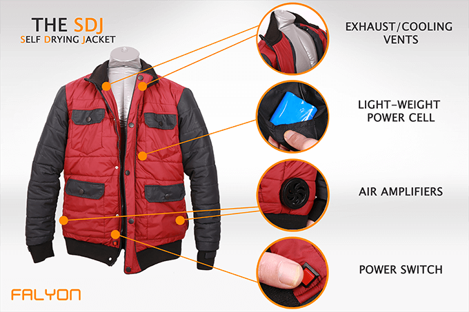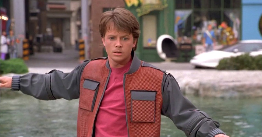 En la película Regreso al Futuro 2, de 1989, el protagonista Marti Mcfly viaja al año 2015 donde cae en la fuente de la plaza central del ayuntamiento. Al salir del agua su chaqueta habla y dice “se procede al secado” y en un segundo se infla y realiza la extracción de humedad, quedando inmediatamente seco.