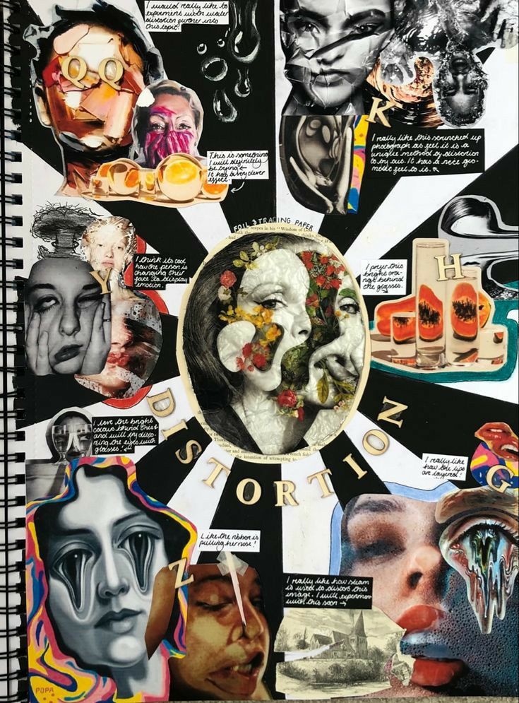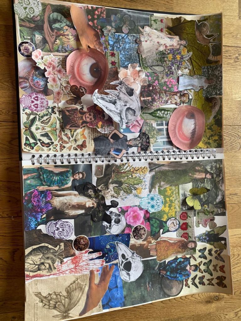 - Realizar en el sketchbook: 2 moodboards (doble página) acerca de tus referentes, en él comenzarás a describir la inspiración de tu estética como diseñador/a. Con titulo en la página, palabras claves que lo definan y breve síntesis explicativa.