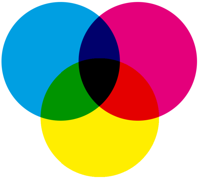 El sistema CMYK, de Cyan, Magenta, Yellow, BlacK, define los colores de forma aditiva, tal como funciona una impresora de inyección de tinta o una imprenta comercial de cuatricromía. El color resulta de la superposición o de colocar juntas gotas de tinta semitransparente, de los colores cian (un azul), magenta (un color rosa intenso), amarillo y negro. El sistema es aditivo, a diferencia de los anteriores, y aquí (0,0,0,0) es blanco puro (el blanco del papel).