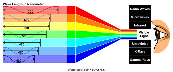 Los que se designa como luz blanca es la impresión creada por el conjunto de radiaciones que son visibles por nuestro ojo; la luz blanca cuando es descompuesta produce el fenómeno de arco iris, estos son los que llamamos colores, el conjunto de estos, o franja continua de longitudes de onda creada por la luz al descomponerse, constituye el espectro.