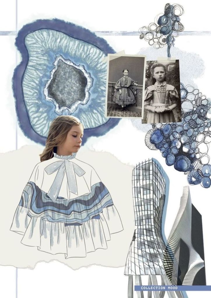 Paneles de inspiración o moodboards: es un conjunto de elementos visuales que están todos relacionados con el tema central de diseño ( investigación previa); es un proceso valioso para los diseñadores de moda. Ya que se recopilan diversos elementos, como fotografías, colores, tipologías de prendas, gradientes, texturas, formas etc. en un panel