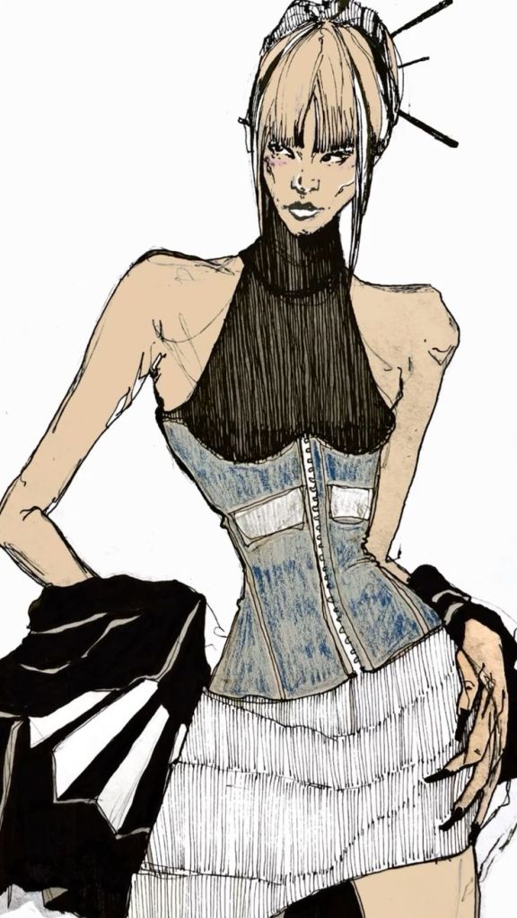 - Realiza 1 look final con figurinismo propio en 3/4 donde apliques el contenido del tema 1.